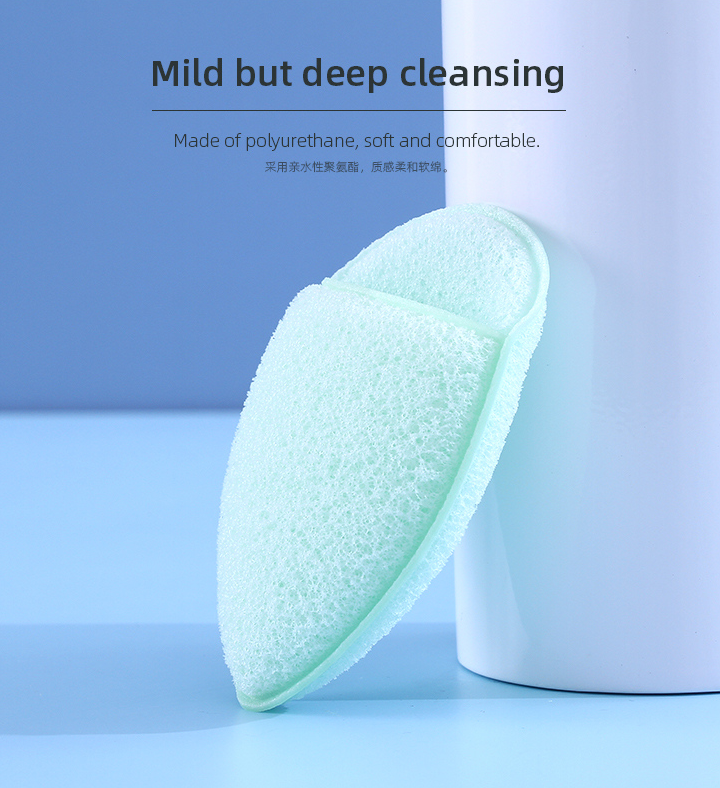 Made of polyurethane, soft and comfortable. Mild but deep cleansing. Use the product with clean water to clean skin. With small amount of facial cleanser, the cleaning effect would be better.