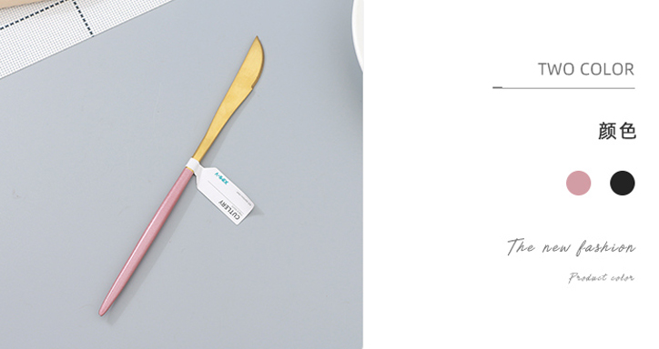 سكين طاولة ستانلس ستيل مطلي بالذهب (أسود وذهبي / وردي وذهبي)